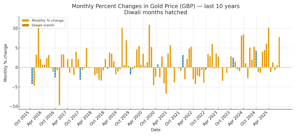 • If you’re buying don’t assume Diwali will push prices up. Keep an eye on the global spot price and compare UK offers before you buy. Buying in India might feel traditional, but premiums and taxes often make it more expensive than buying at home.