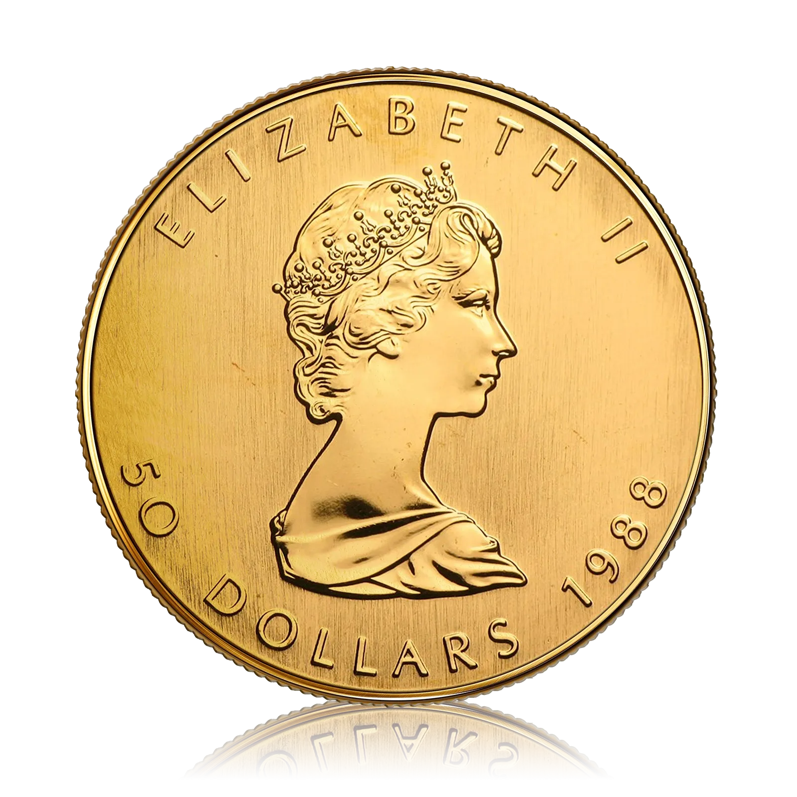 The 1988 1 oz Gold Canadian Maple Leaf depicts the distinctive sugar maple leaf in.9999 pure gold, demonstrating Canada's bullion design expertise. It is struck by the Royal Canadian Mint and blends classic elegance with remarkable purity. A sought-after classic for both collectors and investors.