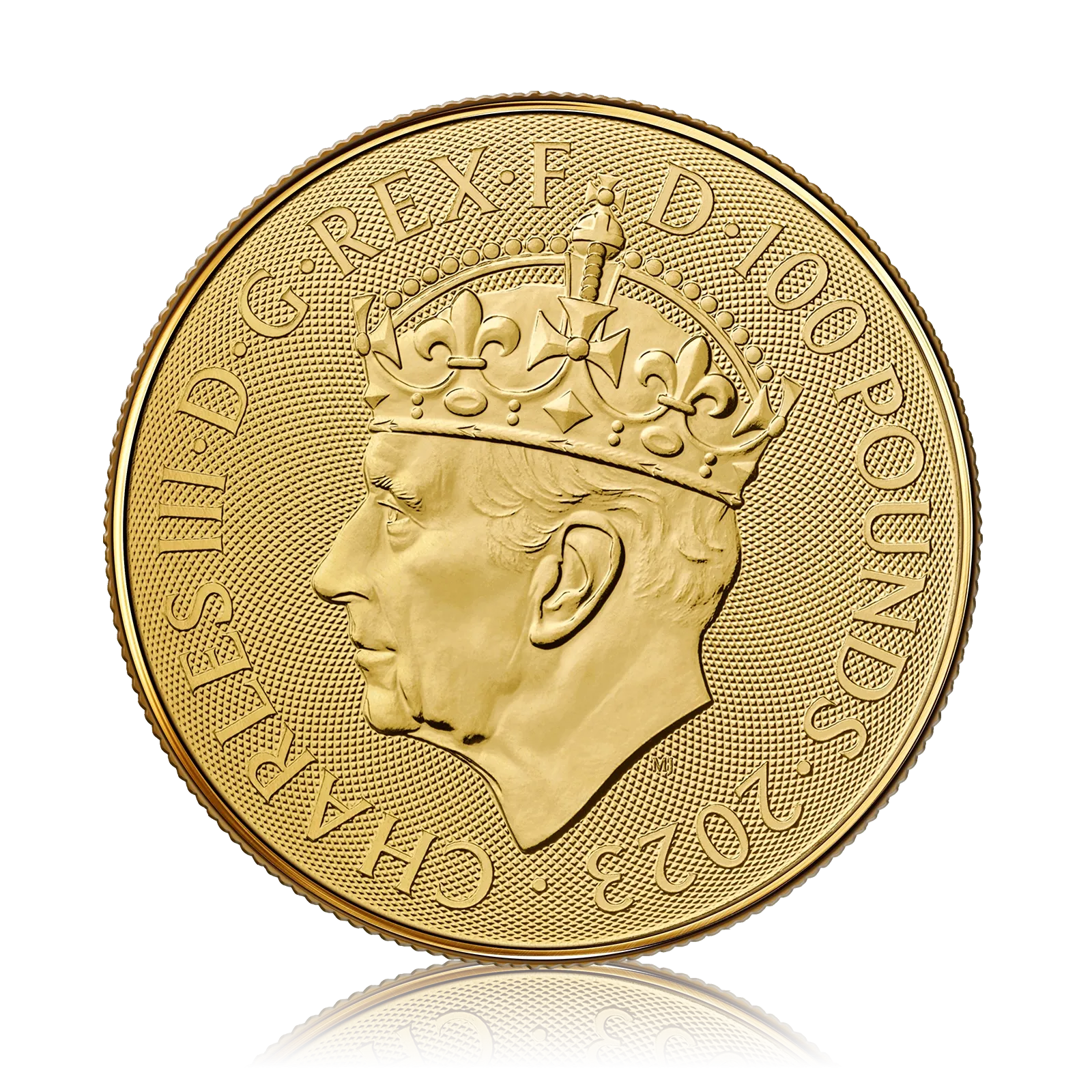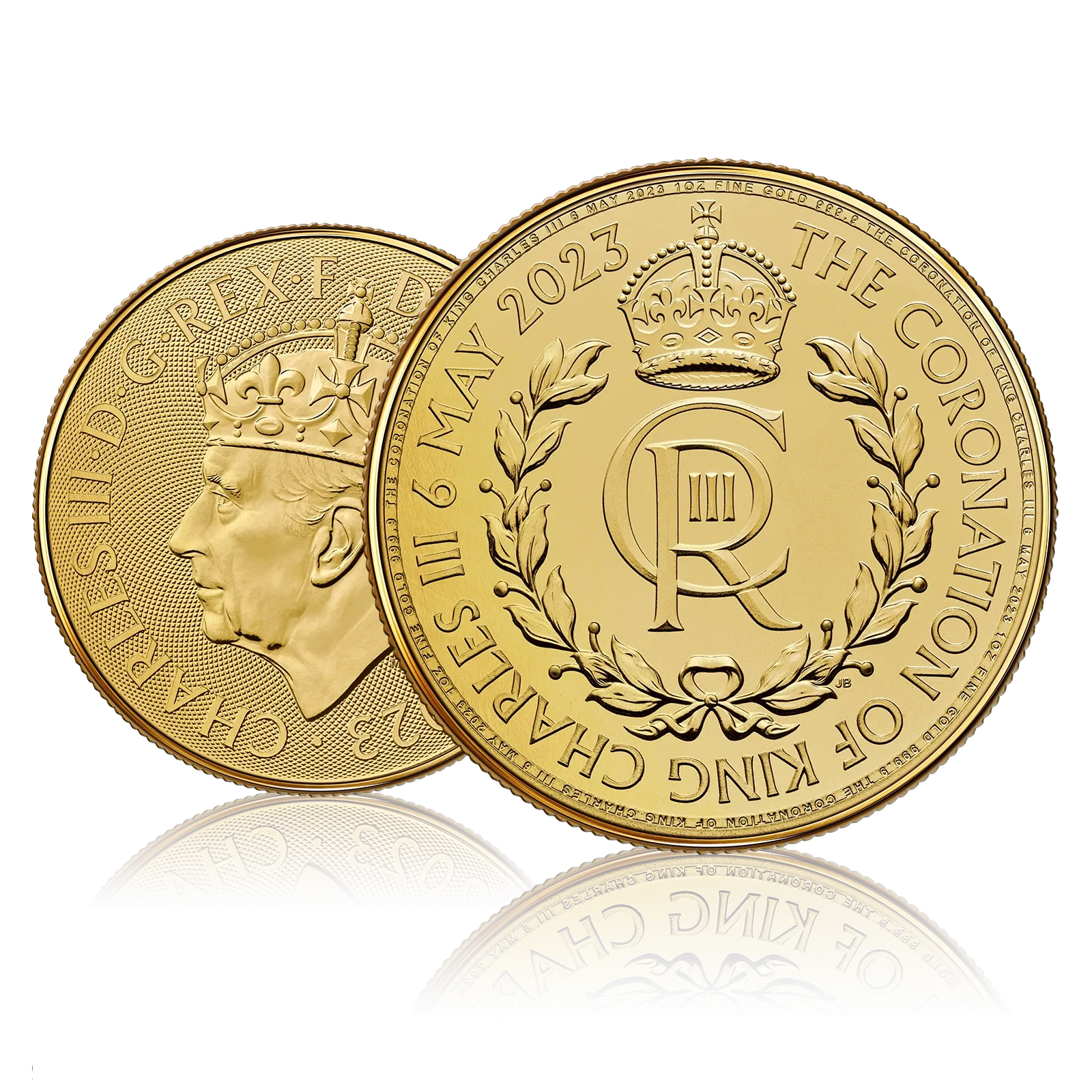 The 2023 1 oz Gold King Charles III Coronation Coin commemorates His Majesty's historic coronation with the first crowned portrait by Martin Jennings and a royal cypher design by John Bergdahl. It is a distinctive bullion coin and a collectible homage to a new era, struck in 999.9 pure gold and limited to just 7,500 pieces.