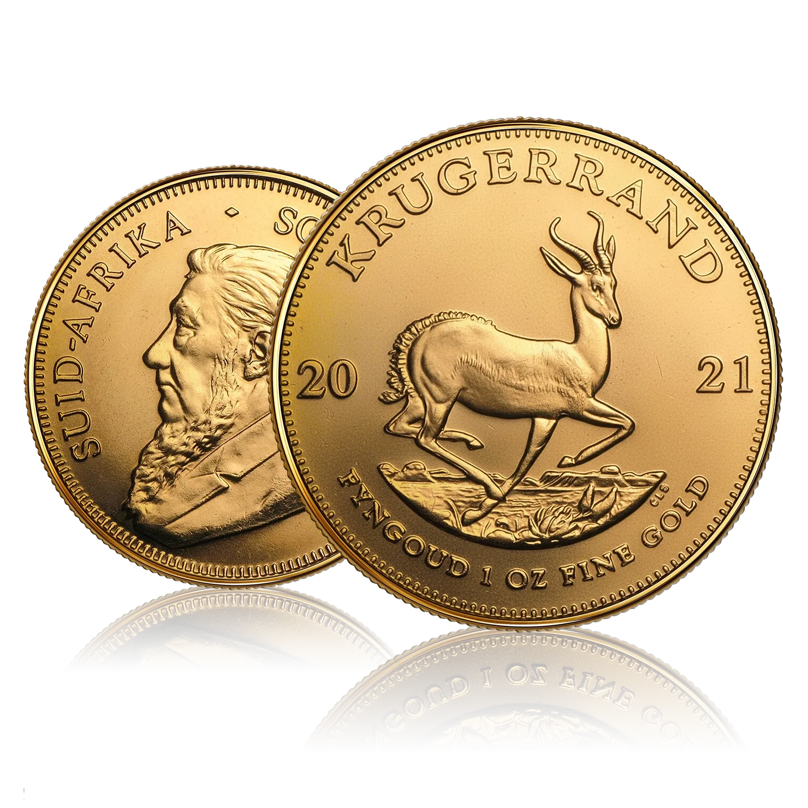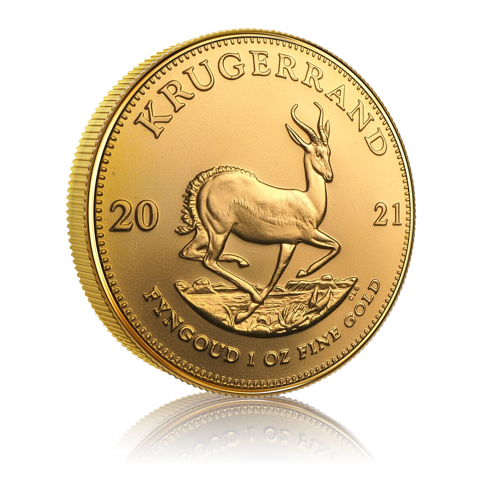 The 2021 South African Gold Krugerrand is a renowned bullion coin carrying one troy ounce of pure gold in a durable 22-carat alloy. It depicts Paul Kruger's renowned face on the obverse and a springbok antelope in mid-leap on the reverse, combining timeless design with high-quality gold.