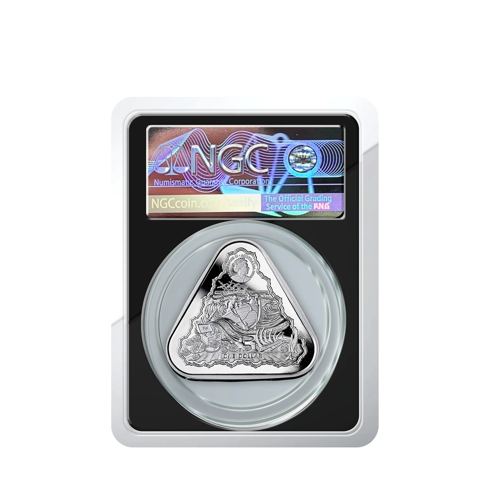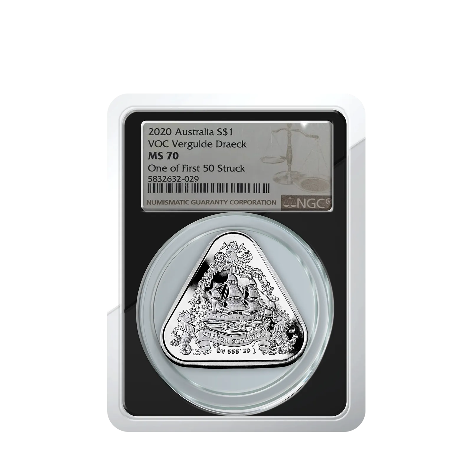 1 Oz Silver Triangle Australia VOC Vergulde Draeck (NGC Graded-MS70)