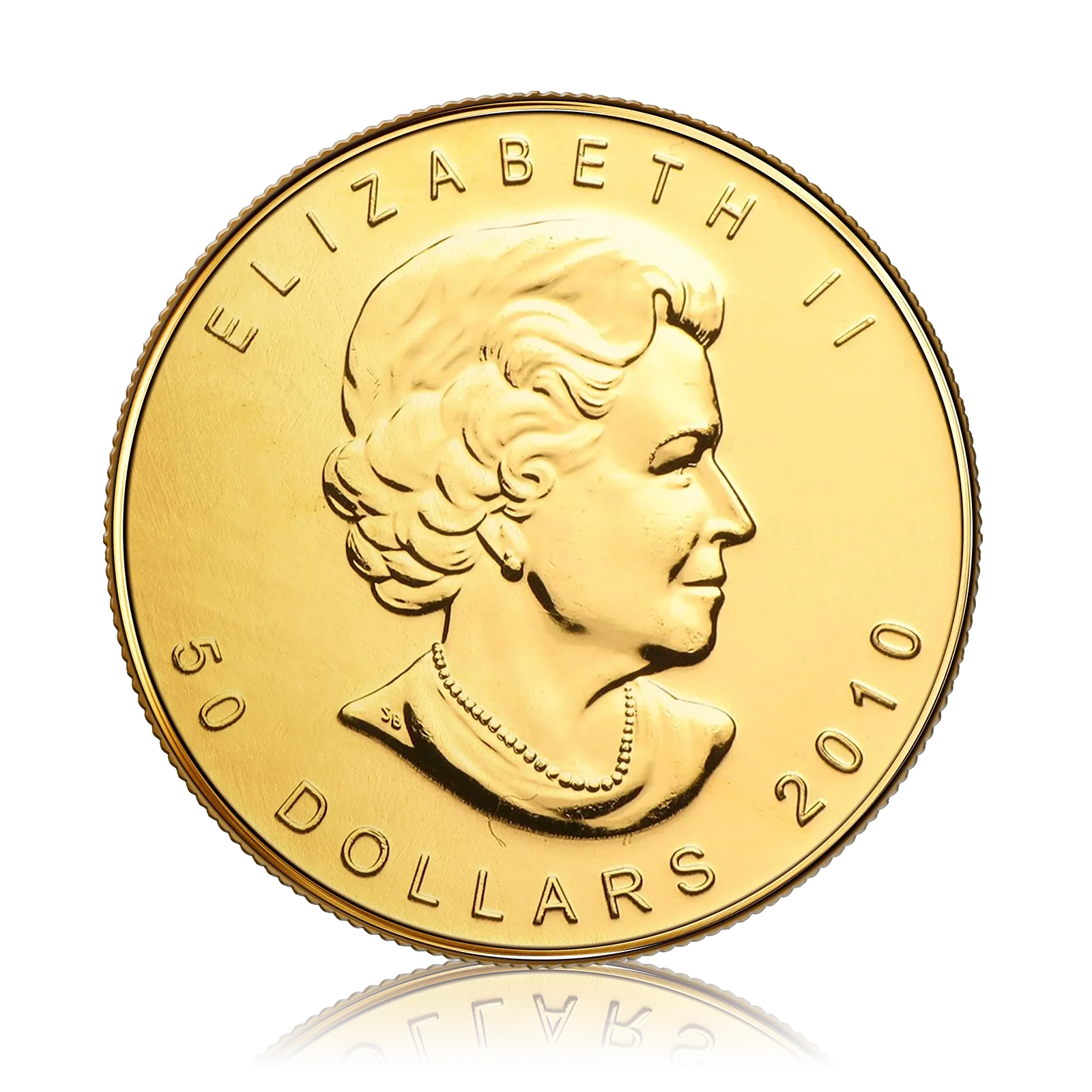 The 1 oz Gold Canadian Maple Leaf (2010) is a.9999 pure gold bullion piece released by the Royal Canadian Mint, known for its purity and iconic maple leaf motif. With Queen Elizabeth II on the obverse and Canada's national symbol on the reverse, it's a reliable investment and a collector item.