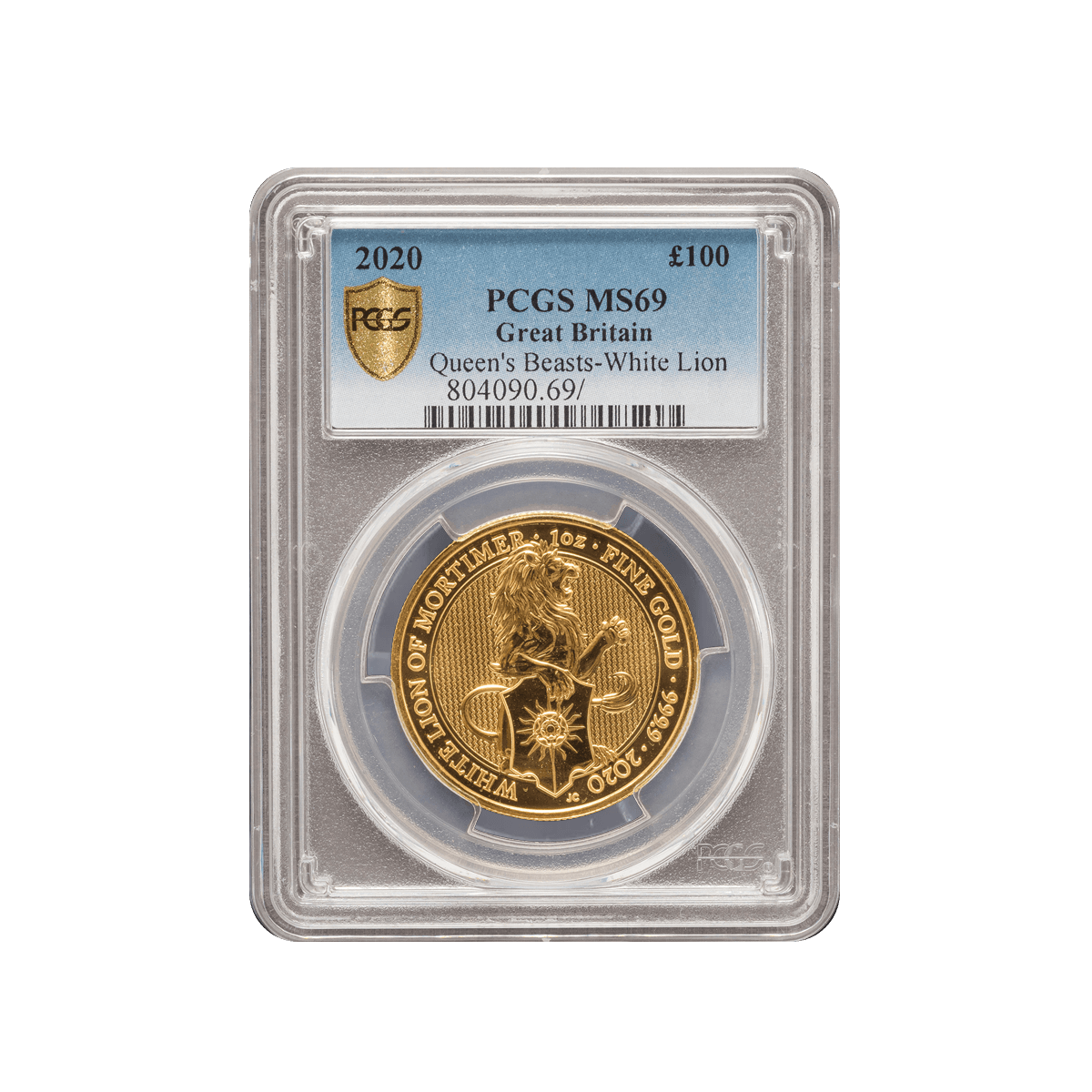 1oz Gold Royal Mint Queens Beast Lion of Mortimer (2020) PCGS- MS68