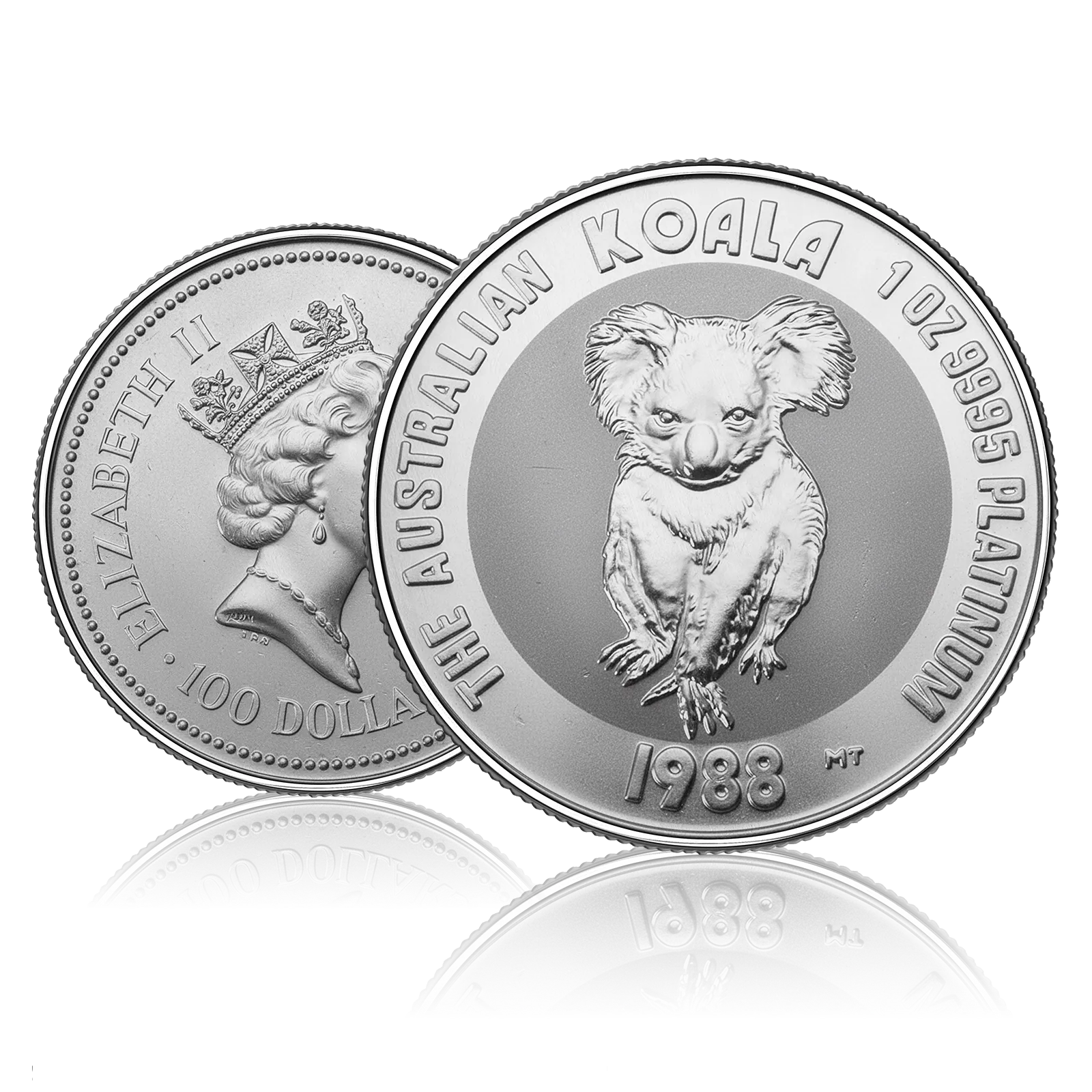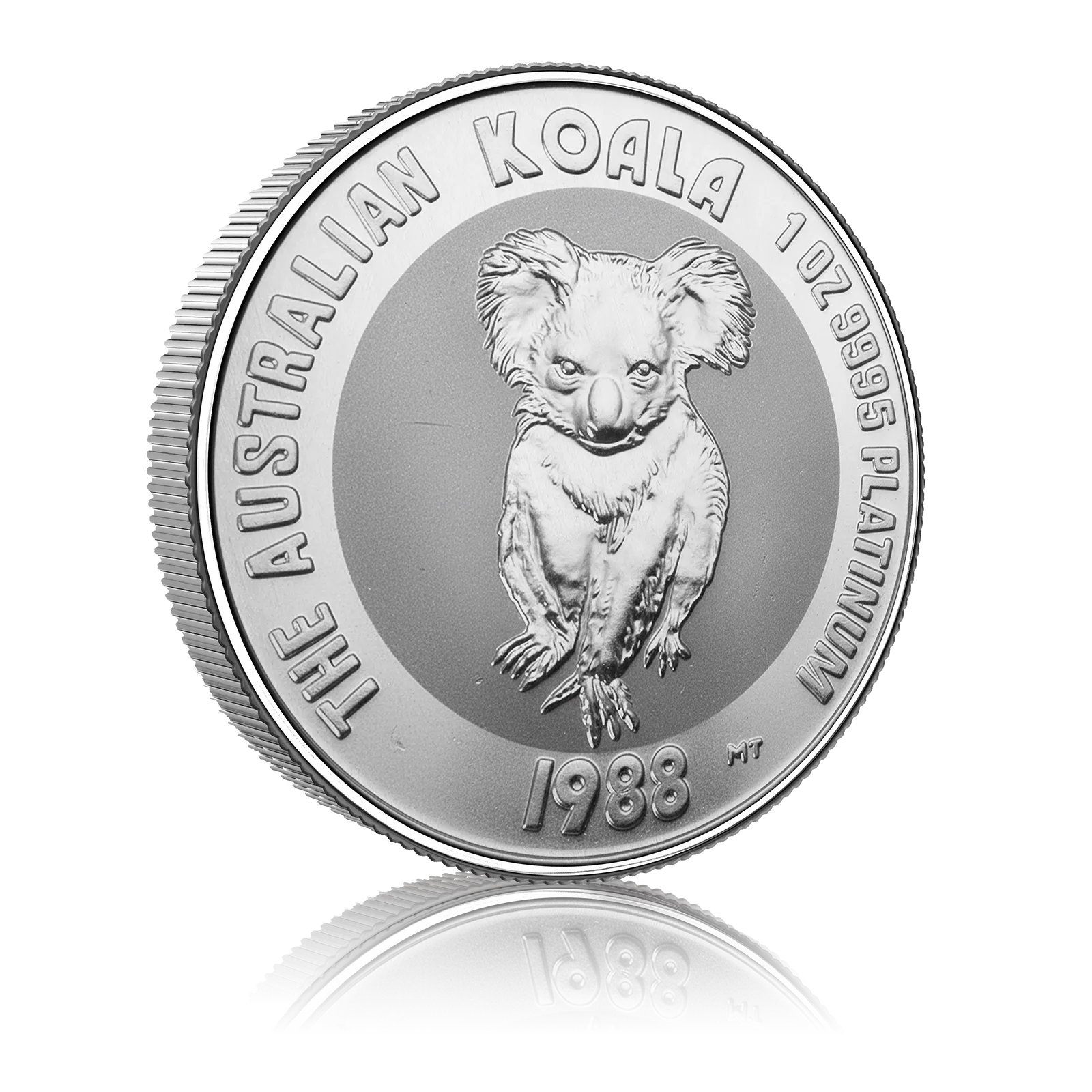 The 1oz Platinum Perth Mint Australian Koala (1988) is a very desirable bullion coin from the first year of the legendary Koala series. The exquisitely detailed image of Australia's cherished koala, set in.9995 pure platinum, exemplifies the Perth Mint's remarkable artistry. It is particularly attractive to investors and collectors due to its first-year status and limited mintage.