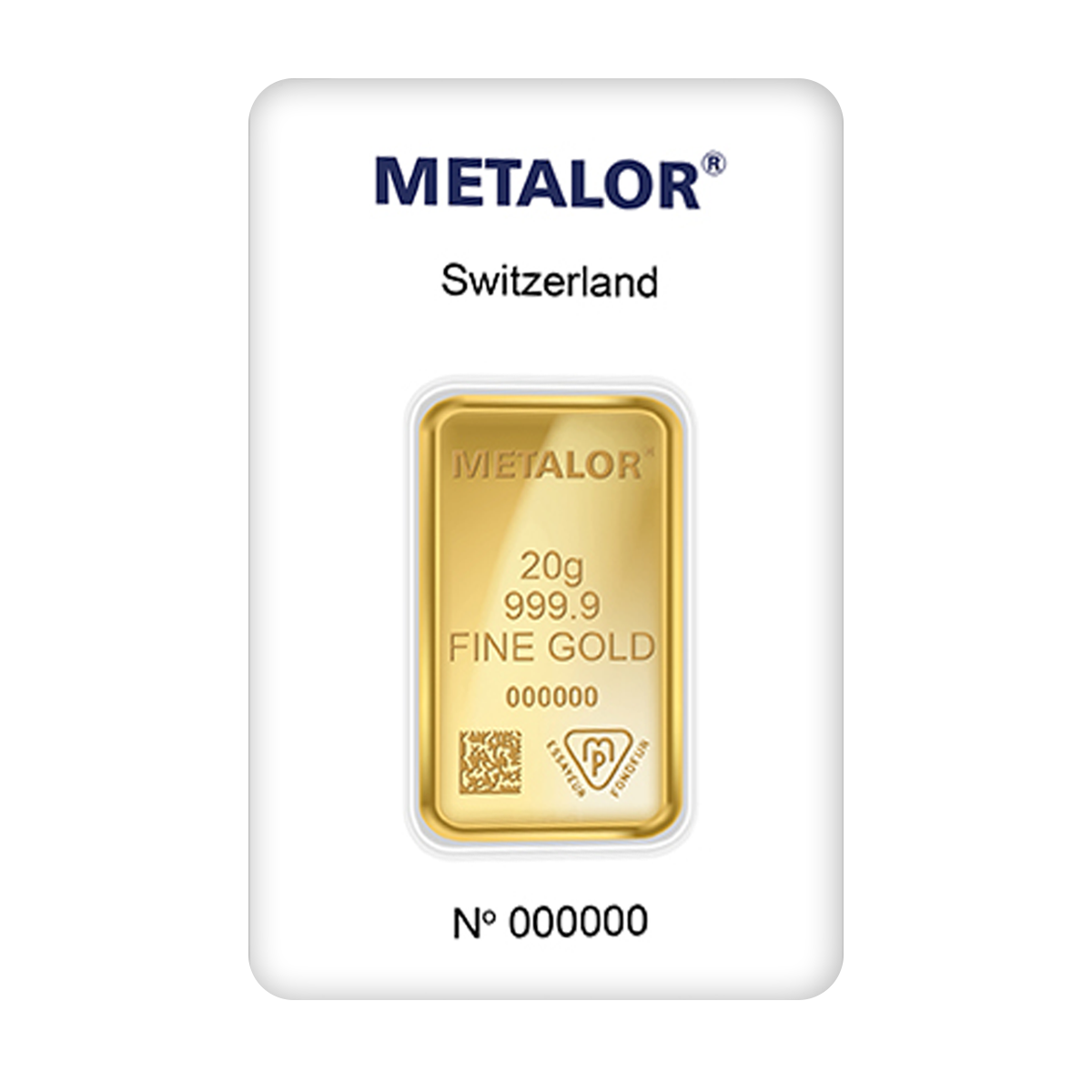 A 20 Gram Metalor Investment Gold Bar Manufactured and produced by Metalor Switzerland. Comes packed, sealed and certified in a brilliant white packaging. Accredited by the LBMA Metalor Gold Bars have an international standard for high quality standards and are the choice for many investors around the world.