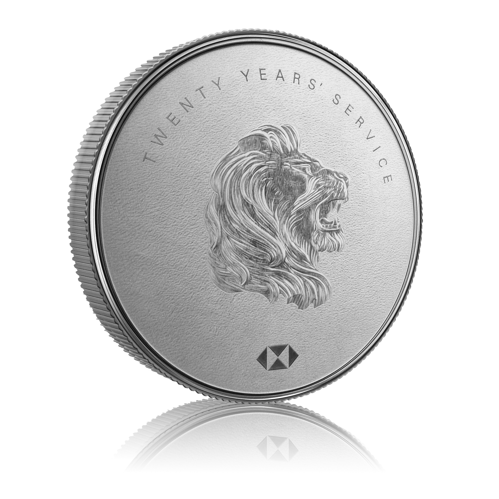 >HSBC branding and 20 years of service recognition are embossed in detail.