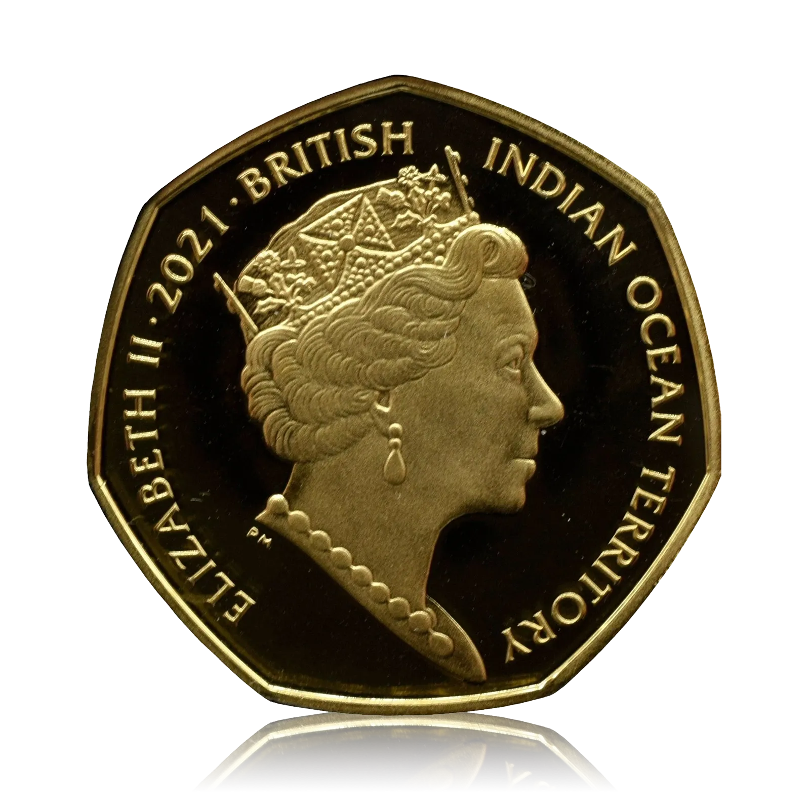 The British Indian Ocean Territory's 2021 50 Pence Gold Proof Coin portrays Queen Elizabeth II on the obverse and Raymond Briggs' favourite Father Christmas carrying a sack and accompanied by his dog alongside a festive tree on the reverse. Struck in 22-carat gold, it combines seasonal appeal with excellent craftsmanship, making it a desirable collector for both christmas and numismatic fans.