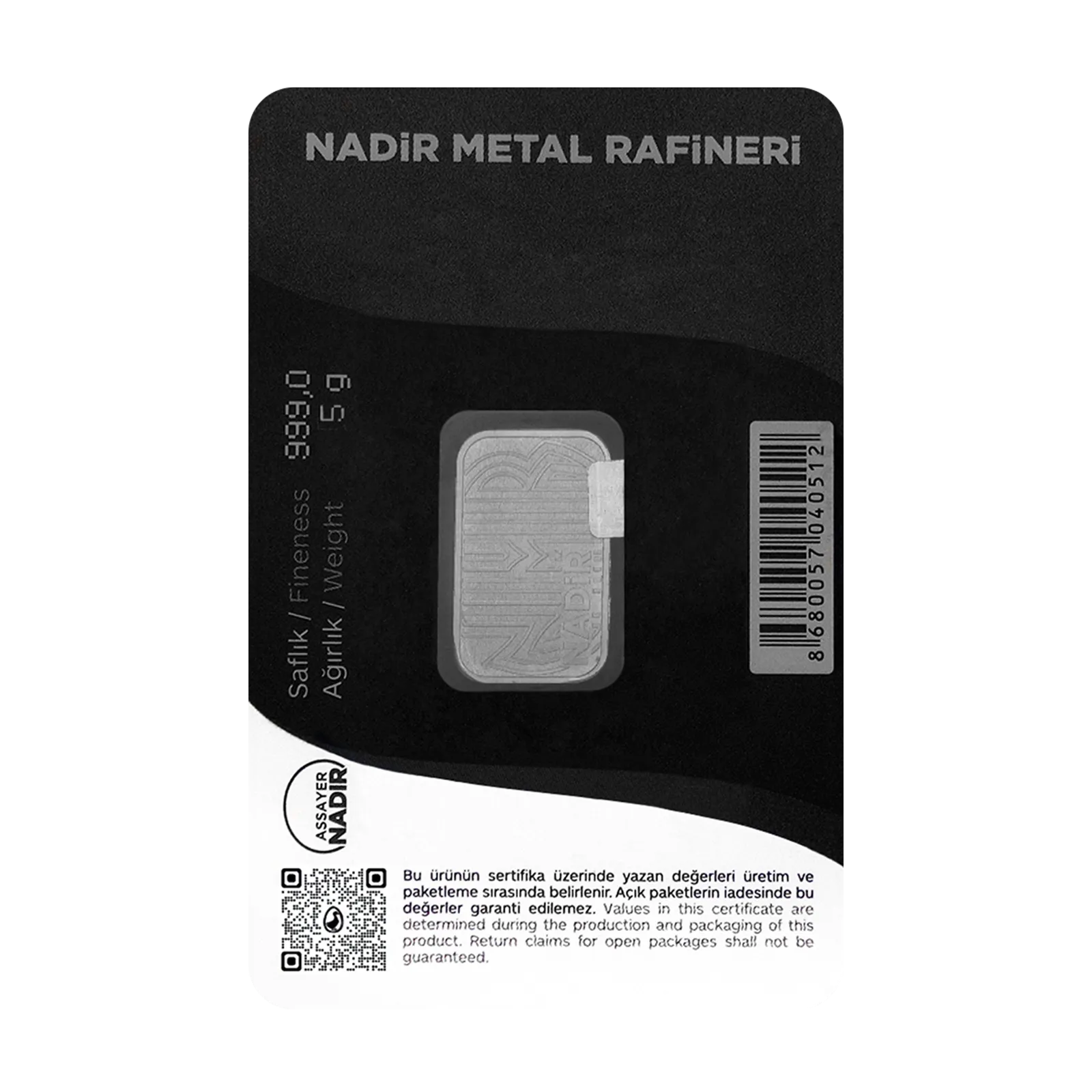 >Made by Nadir Refinery, a well-known and LBMA-approved precious metals company