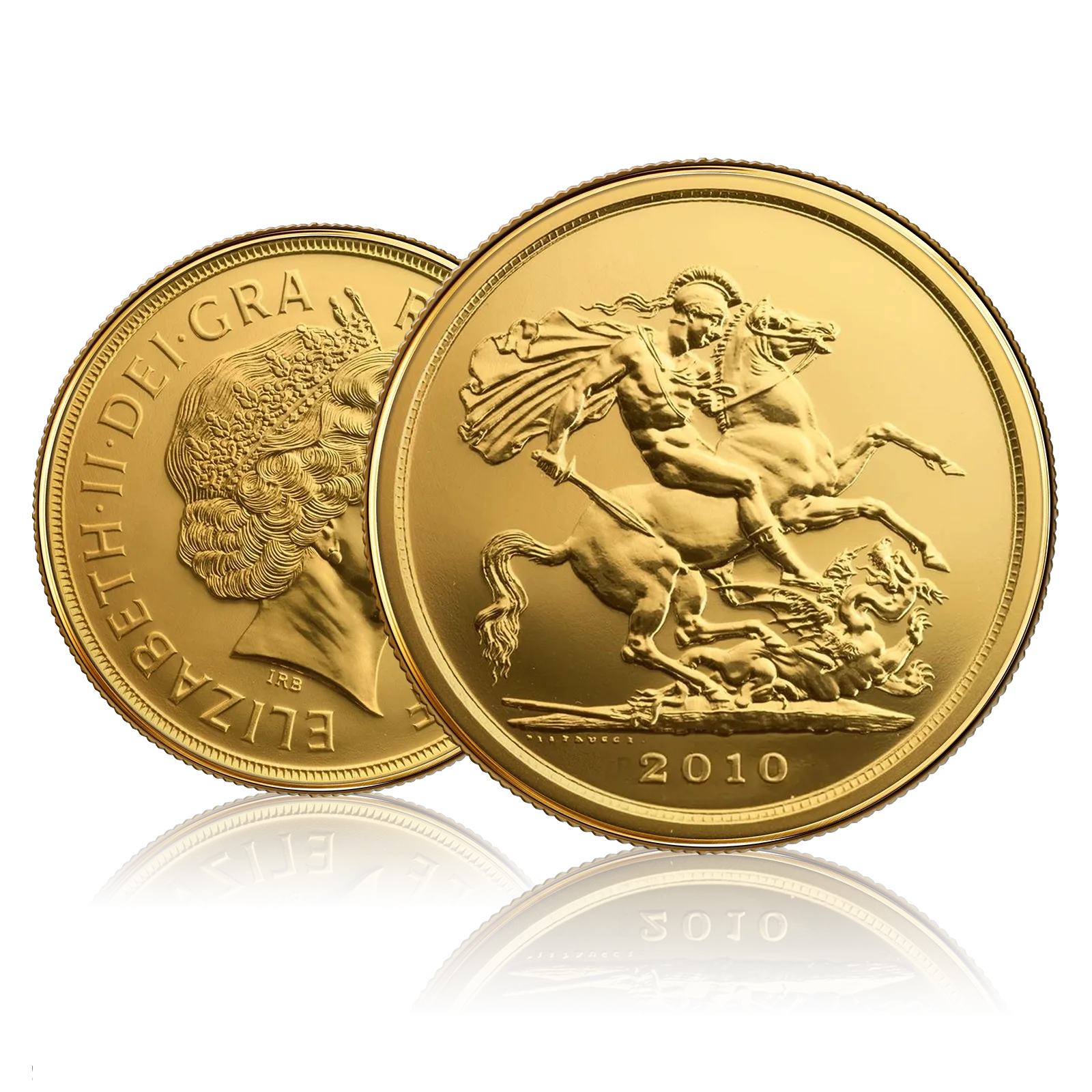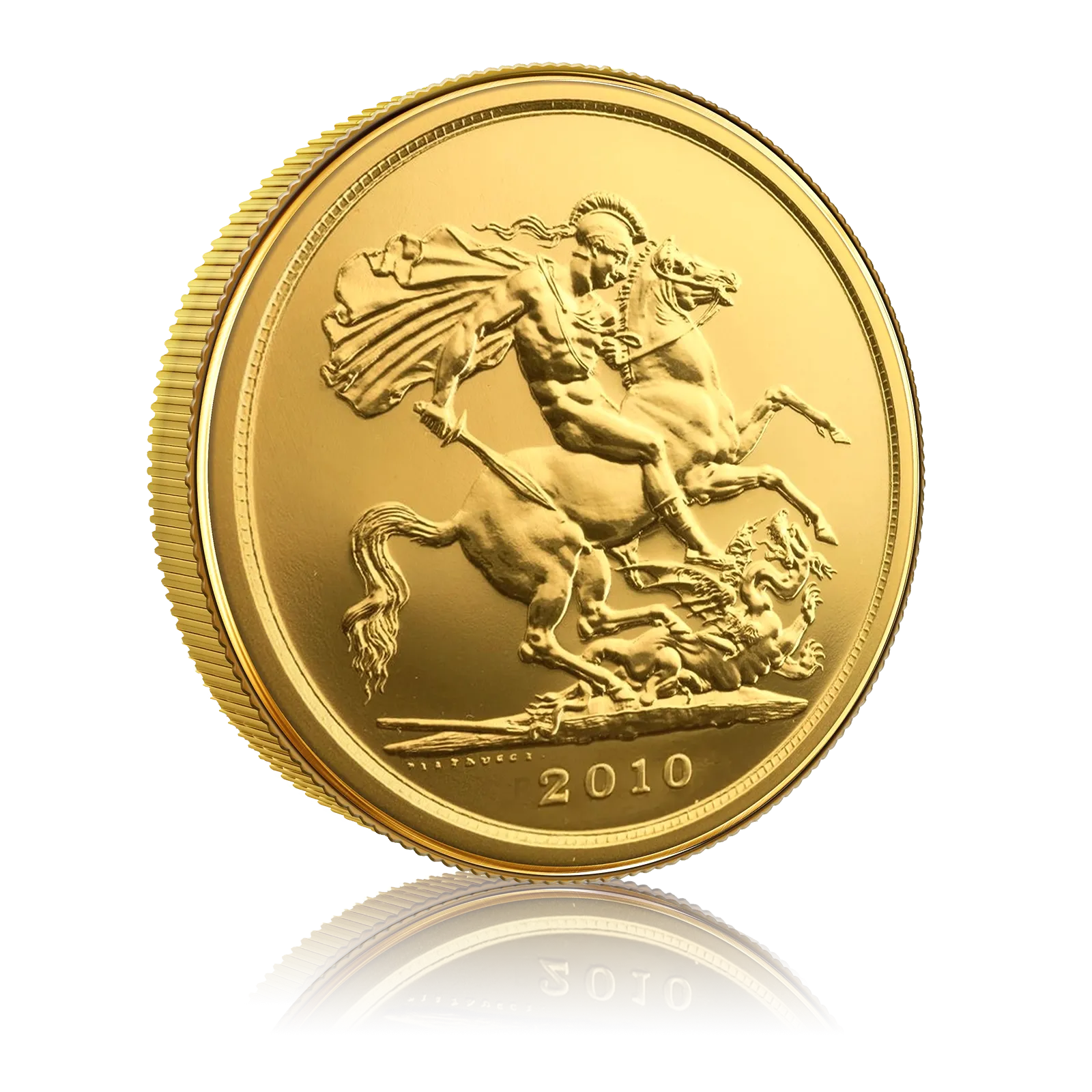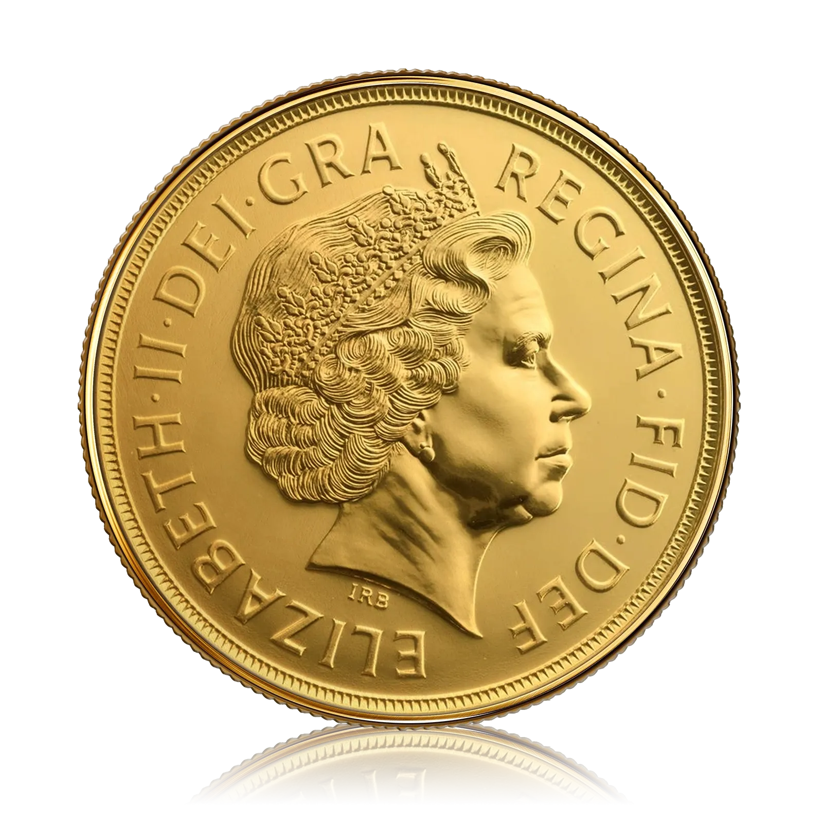 The Gold Quintuple Sovereign (2010) is a renowned British coin known for its historical look as well as its high gold content. It is highly sought after by both investors and collectors due to its fine finishing.