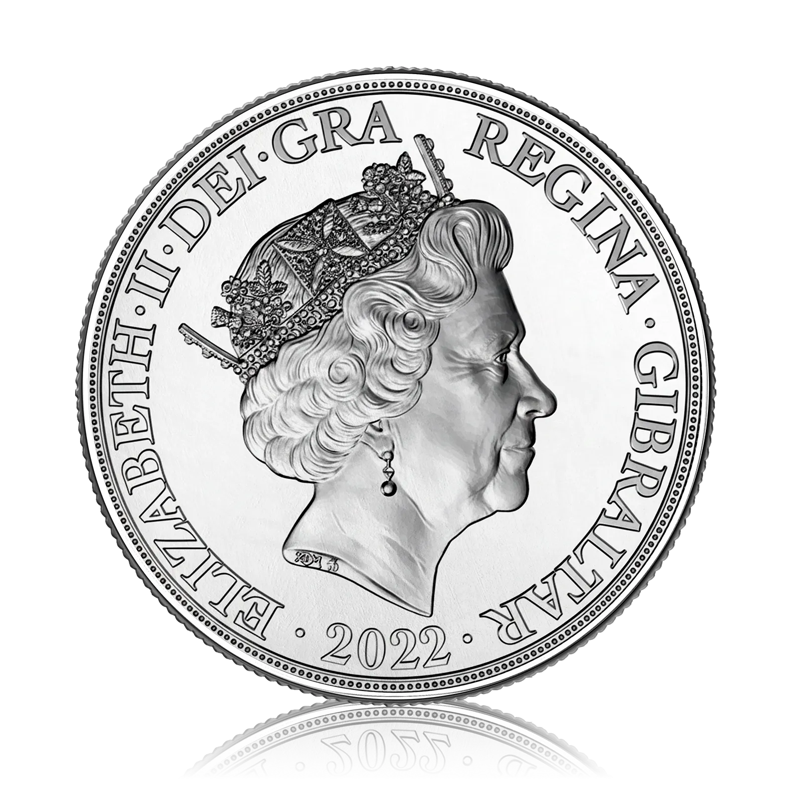 >The obverse features the face of Queen Elizabeth II with the date 2022.